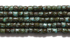 9SC162-52R: Czech Seed Bead 3-cut Turquoise Blue Travertine 9/0 - - Color# 63030/69930 - - 1 Hank