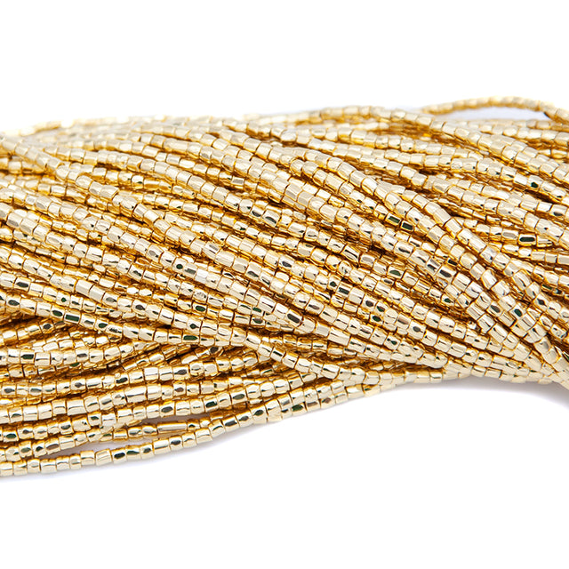 Czech Seed Bead 3-cut 24 Karat Gold Plate 9/0 10 Strand - 5 Hanks