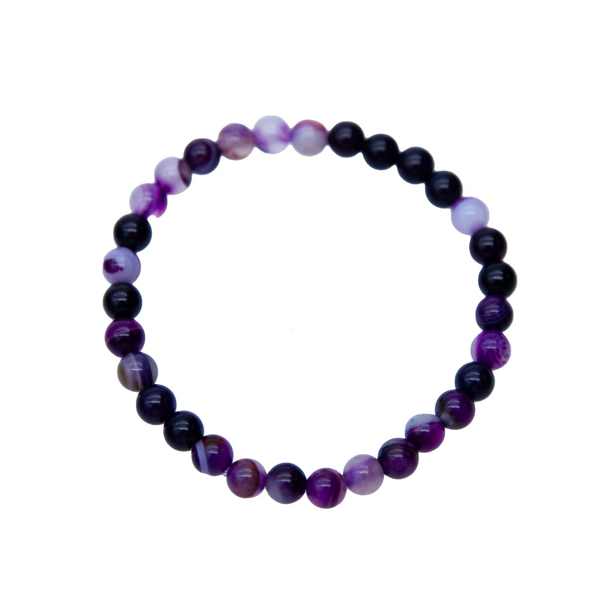 STB5544-6: Stretch Bracelet Purple Banded Agate 6mm Round is backordered and will ship as soon as it is back in stock.
