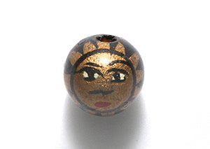 Wood Round Black Gold Sun Face Painted 10mm - 12 Pieces