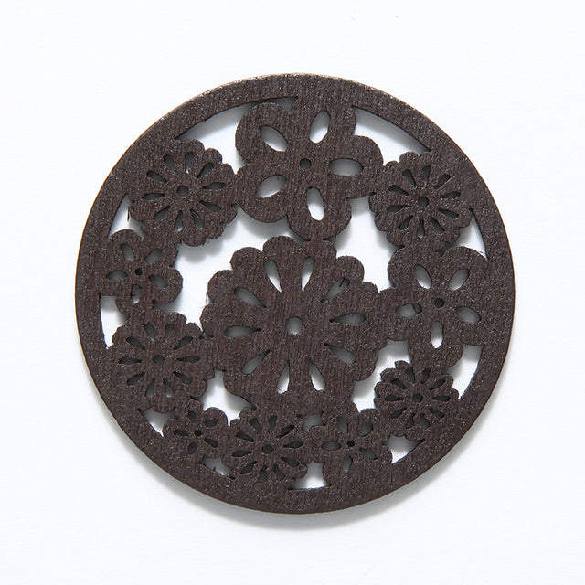 Cut Wood Circle With Flower 48mm Dark Finish 1 Piece