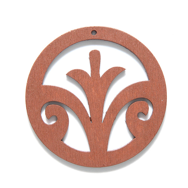 48WC837-56: Wood Circle Fleur De Lis 48mm Brown-3PC