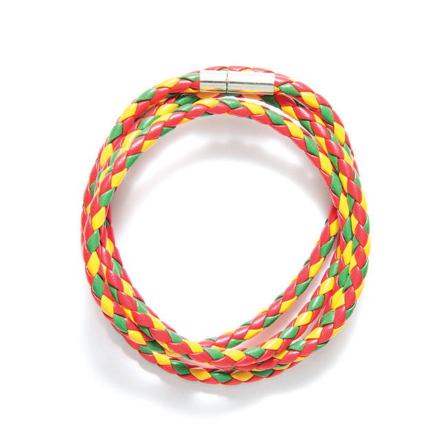 70LN124-30: Necklace Leather Braid Red/yellow/green 30in-1PC