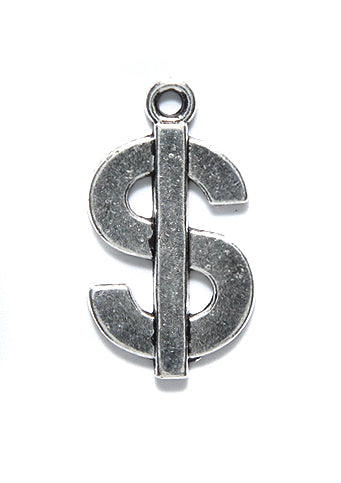 Metal Charm Dollar Sign Silver 14x26mm - 20 Pieces