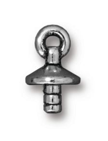 TC5703-AS: TierraCast Glue-On Cap W/Loop Basic 2.4mm Peg Antiqued Silver Plate