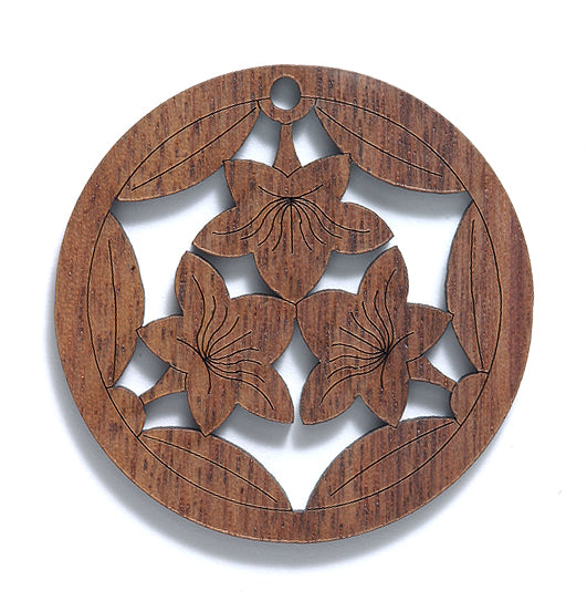 Walnut Wood Pendant Tri Flower 38mm - 1 Piece