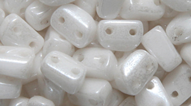 36TI312R: Czech Dracula Bead Two Hole Luster White 4x6mm - - 50 Piece Pack