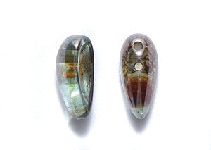 42CM212-83R: Czech Chilli Two Hole Green Marble Luster 4x11mm - - 50 Piece Pack