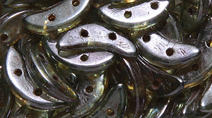 63HM083: CZmates Crescent 2HOLE Green Marble 3x10mm 72PC