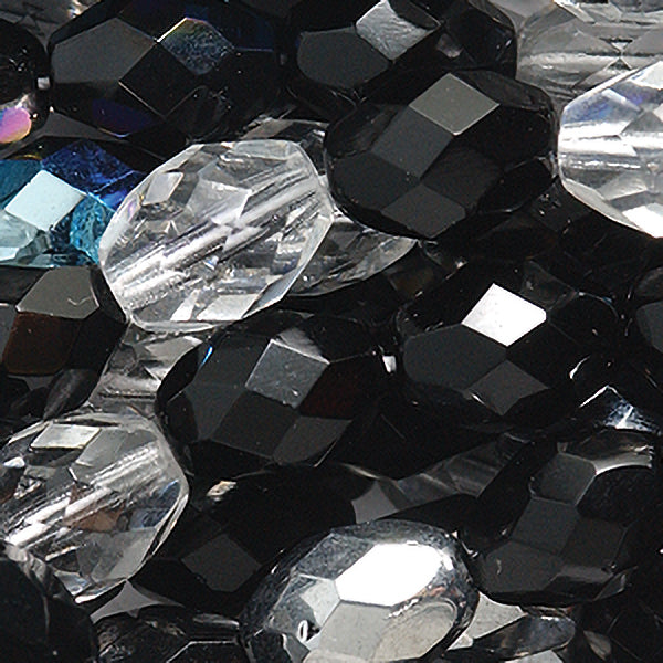Czech Faceted Oval Mix Crystal/black/silver 7x9mm - 360 Pieces