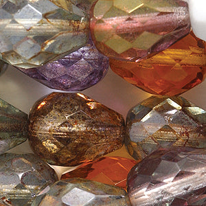 46FC999-2JR: Czech Faceted Drop Mixed Picasso Coats 10x13mm - - 20 Piece Pack