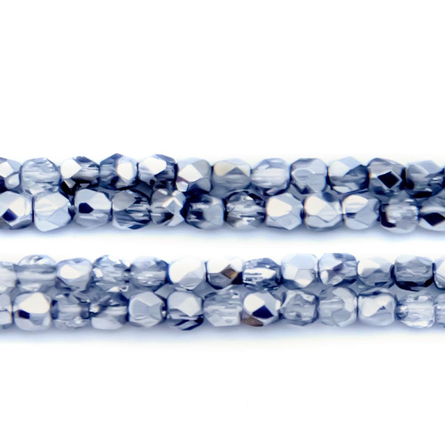 Czech Faceted Round Crystal 1/2 Silver True 2mm - - 100 Piece Pack