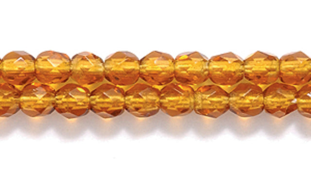 3FC256-2R: Czech Faceted Round Transparent Darker Topaz 3mm - 100 Pieces