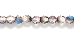 3FC591-UR: Czech Faceted Round Pink Azuro Aurora Borealis Finish 3mm - - 100 Piece Pack
