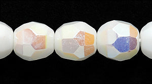 7FD511-XR: Czech Faceted Round White Aurora Borealis Finish 7mm - - 25 Piece Pack