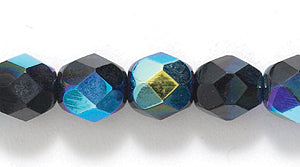 6FC509R: Czech Faceted Round Black Aurora Borealis Finish 6mm - - 50 Piece Pack