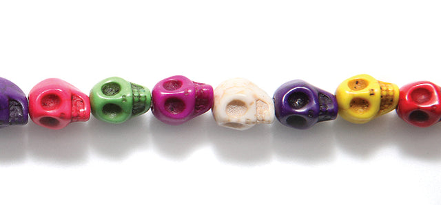Detailed Description: These delightfully colorful stone skulls are great for Day of the Dead designs as well as every-day attire! Their smaller size allows for more subtle integration into a broader range of applications.