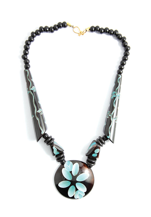Resin Necklace Brown With Turquoise 18 Inch - 1 Piece
