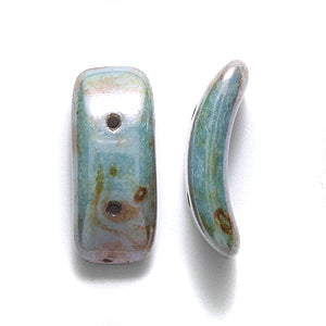 Czech Bow Two Hole Green Picasso Off White 3.5x15mm - 120 Pieces
