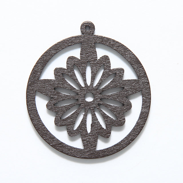 Cut Wood Circle With Loop 48mm Dark Finish - 3 Pieces