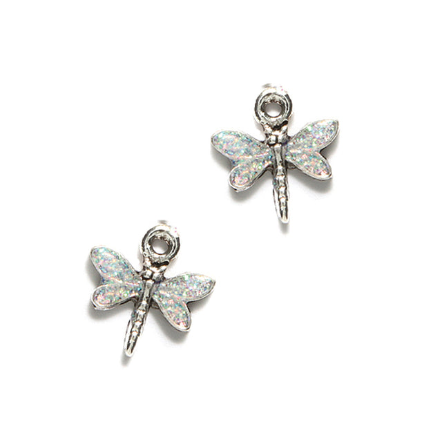 USA made Lead-Safe Pewter Charm Dragonfly with Glitter Epoxy Antiqued Pewter Finish 14mm - Sold Individually