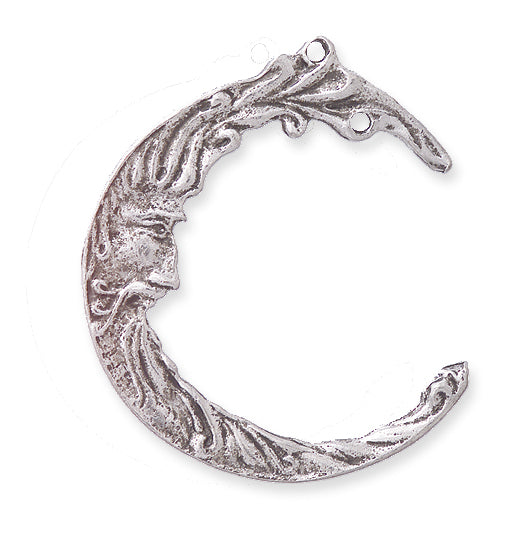 Moon Large Bearded Crescent Moon Antiqued Pewter 40mm