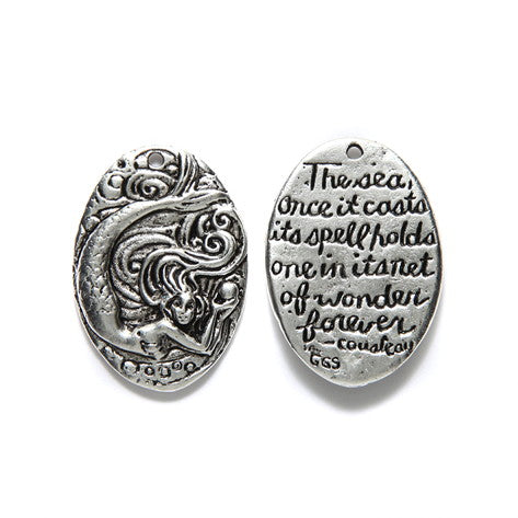 Green Girl Mermaid Pearl Antique Silver 22x31mm - 1 Piece