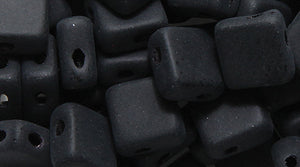 Czech Flat Square Diamond Two Hole Black Matte 6mm 75 Pieces