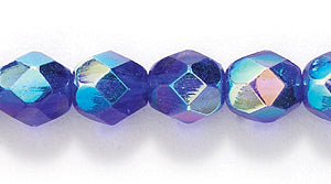 Czech Faceted Round Cobalt Aurora Borealis Finish 6mm 300 Pieces
