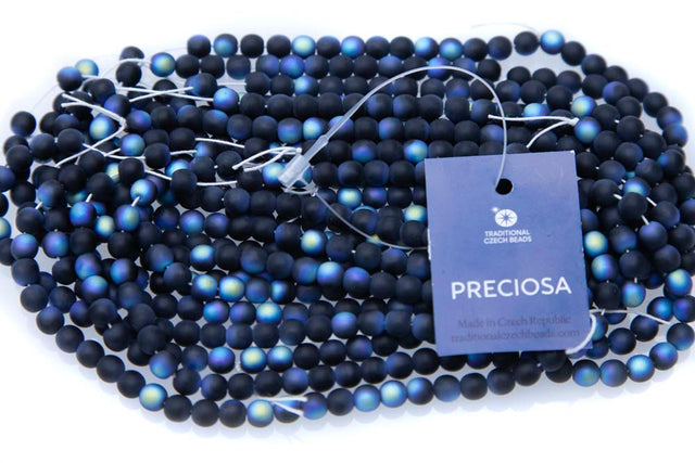Czech Round Black Aurora Borealis Matte 6mm - 600 Pieces