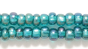 6SB487-ABR: Czech Seed Bead Silver Lined Emerald Aurora Borealis Finish 6/0 - - Color# 57719 - - 6 Strings