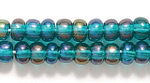 6SB587-TR: Czech Seed Bead Transparent Emerald Aurora Borealis Finish 6/0 - - Color# 51710 - - 6 Strings