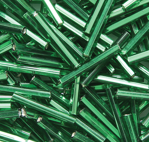 Vintage Venetian Bugle Bead Silver Lined Christmas Green 15mm - 200 Grams per Package