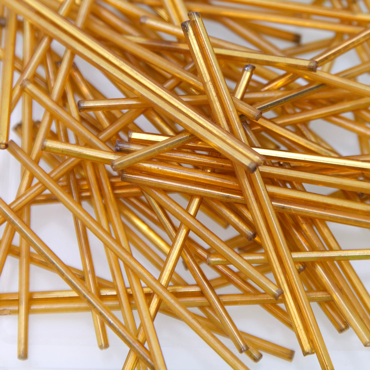 Detailed Description: Vintage Venetian bugle silverlined topaz 20-60mm avg - 200 Grams. These vintage Venetian seed beads were crafted between the late 1800s and early 1920s, a testament to the extraordinary skill of Murano glass artisans working under Società Veneziana Conterie—a consortium of sixteen independent beadmakers united in 1898. Each bead carries over a century of history, made from glass canes that often predate the consortium itself. Because every batch was handmade, subtle differences in shape, size, and color are to be expected and celebrated. Most strands have long since given way to time, so a few broken bits of string may be found among these authentic treasures.