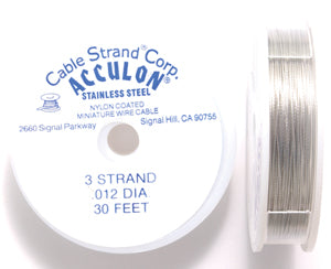 Acculon® is one of the first beading wires on the market. Manufactured in the United States this nylon coated stainless steel twisted beading wire is great for beads with abrasive holes. Use wire guardians and crimp tubes to finish off your Acculon® cable strand designs.
