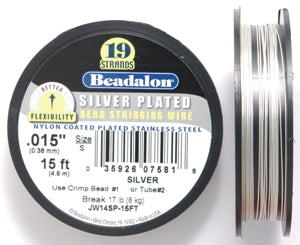 Detailed Description: Combine the flexibility and strength of Beadalon 19 Strand Beading wire with the luster of precious metal. Supple 19 strand stainless steel is plated with Silver, then coated with clear soft nylon. Brilliant Silver plated wire perfectly coordinates with sterling silver or silver plated findings.