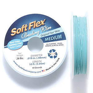 Soft Flex is crafted with state of the art micro wire technology. Soft Flex Beading wire is lead free and constructed from 21 or 49 micro woven stainless steel cables, braided together and coated in nylon. This innovative wire technology gives you a superior, flexible and knottable super strong beading material.