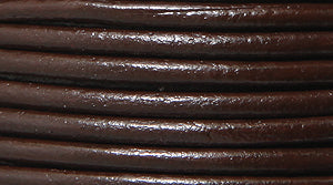 Detailed Description: Economical round leather cord manufactured in India. Available in a vast array of color options in 1mm, 2mm, and 3mm diameters.