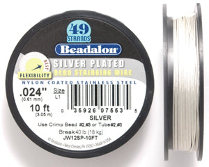 24FI812-10: Beadalon .024 49-strand Silver Plate 10ft Spool 1 Spool is backordered and will ship as soon as it is back in stock.