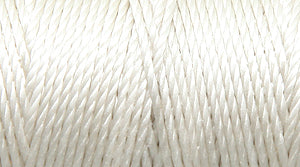 Detailed Description: C-Lon beading cord is a strong superior nylon thread with a breaking strength of about 34 pounds. This beading cord is just under .5mm in diameter, and is perfect for dainty macrame or Kumihimo braiding. C-Lon bead cord is also wonderful for bead crochet projects using a size 8/0 or larger seed bead.