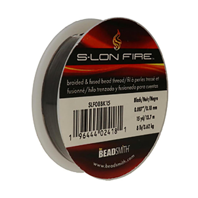 S-LON FIRE is a microfused braided bead thread - a budget friendly alternative to FireLine . Durable, strong, stretch resistant, and knots easily. Fits your beading needle sizes #10, #12, and #13, Use instead of nylon threads when weaving sharp edged beads such as crystals and bugle beads.