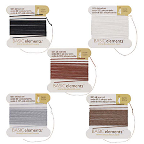 Very low stock (2 units)$2899Unit price /UnavailableCHSMX04-ASST: BEADSMITH SILK #4 COLOR BK WH GY BG BR 2M/CARD