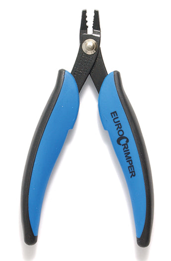 Detailed Description: This crimping tool fits any standard "medium" crimp from 2-3 mm. This tool has two different sized crimping grooves plus a round crimping groove to accommodate crimp and wire size variances.
