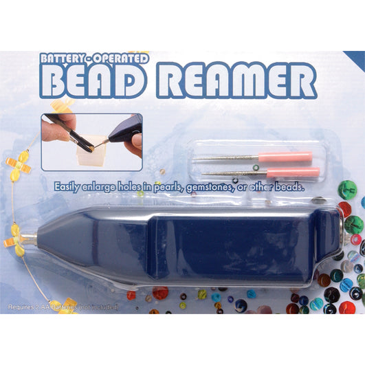 Detailed Description: Simply the best Battery Operated Bead Reamer on the market. Easily enlarge holes in pearls, gemstone, or lamp beads. Simply submerge bead and tip into a small amount of water, firmly hold bead and press the button and watch the reamer work. Requires 2 AA batteries (not included). Includes two tapered tips.