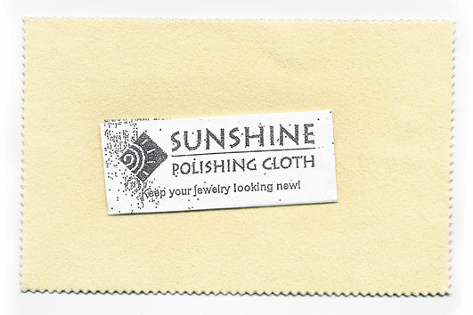 Detailed Description: The Sunshine Polishing Cloth gently cleans, polishes, brightens, and removes tarnish and smudges from sterling silver, gold, copper, glass, mirrors, and PMC. Each cloth is impregnated with a special non-toxic chemical cleaning agent and non-scratch micro-abrasives. Use cloth over and over until it has become completely darkened. 05"x07.5".