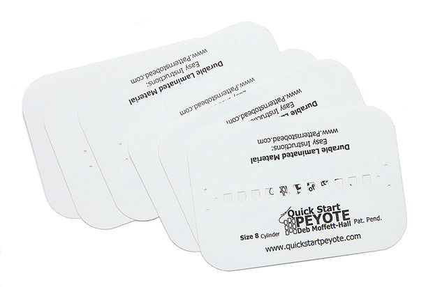 Detailed Description: Quick Start Peyote Cards Never struggle to start a peyote project again! Cards can also be used to start Right Angle Weave! Quick Start Peyote is a fast and easy way to start even-count or odd-count peyote projects. Cards look like paper, but work like plastic. The QSP starter cards are precision laser-cut from a three layer durable laminate. Reuse the cards again and again!