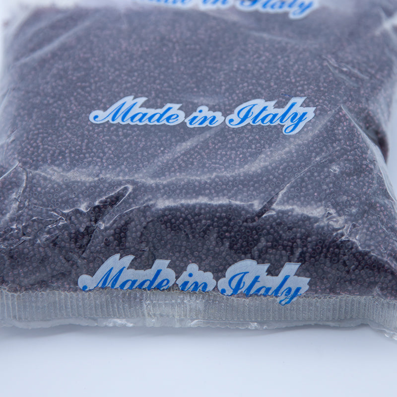 Detailed Description: Vintage Venetian seed bead transparent amethyst 11/0 - 250 grams. These vintage Venetian seed beads were crafted between the late 1800s and early 1920s, a testament to the extraordinary skill of Murano glass artisans working under Società Veneziana Conterie—a consortium of sixteen independent beadmakers united in 1898. Each bead carries over a century of history, made from glass canes that often predate the consortium itself. Because every batch was handmade, subtle differences in shape, size, and color are to be expected and celebrated. Most strands have long since given way to time, so a few broken bits of string may be found among these authentic treasures.