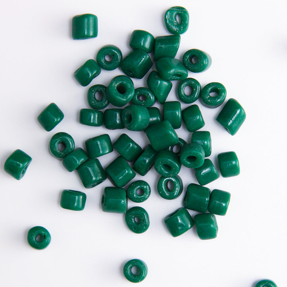 Detailed Description: Vintage sb opq lstr dk grn 1/0. These vintage Venetian seed beads were crafted between the late 1800s and early 1920s, a testament to the extraordinary skill of Murano glass artisans working under Società Veneziana Conterie—a consortium of sixteen independent beadmakers united in 1898. Each bead carries over a century of history, made from glass canes that often predate the consortium itself. Because every batch was handmade, subtle differences in shape, size, and color are to be expected and celebrated. Most strands have long since given way to time, so a few broken bits of string may be found among these authentic treasures.