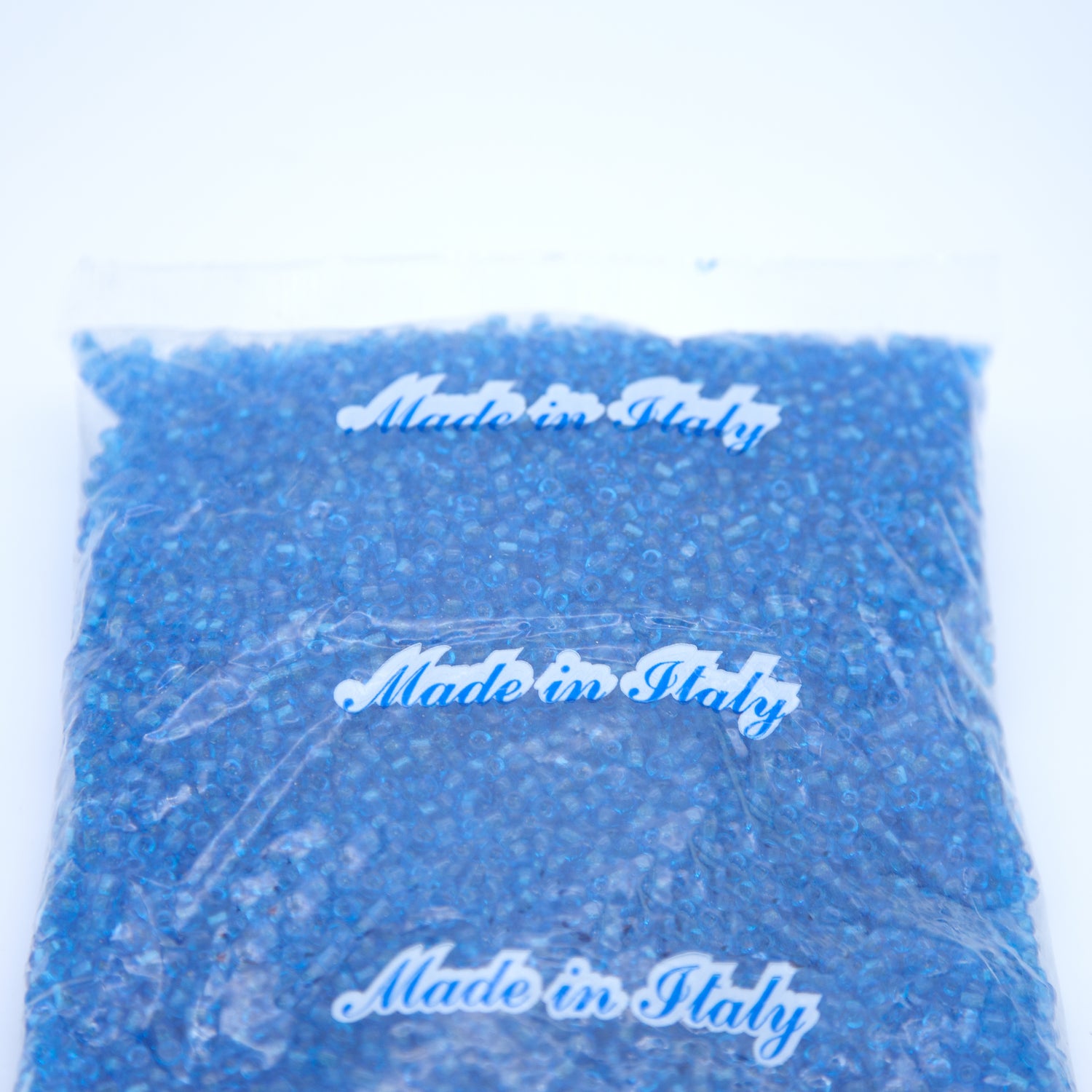 Detailed Description: Vintage Venetian seed bead transparent aqua 5/0 - 250 grams. These vintage Venetian seed beads were crafted between the late 1800s and early 1920s, a testament to the extraordinary skill of Murano glass artisans working under Società Veneziana Conterie—a consortium of sixteen independent beadmakers united in 1898. Each bead carries over a century of history, made from glass canes that often predate the consortium itself. Because every batch was handmade, subtle differences in shape, size, and color are to be expected and celebrated. Most strands have long since given way to time, so a few broken bits of string may be found among these authentic treasures.