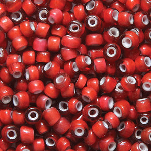 8SV7703-2R: Antique Venetian Seed Bead White Heart Dark Rose #2 8/0 - - 50 Gram Pack